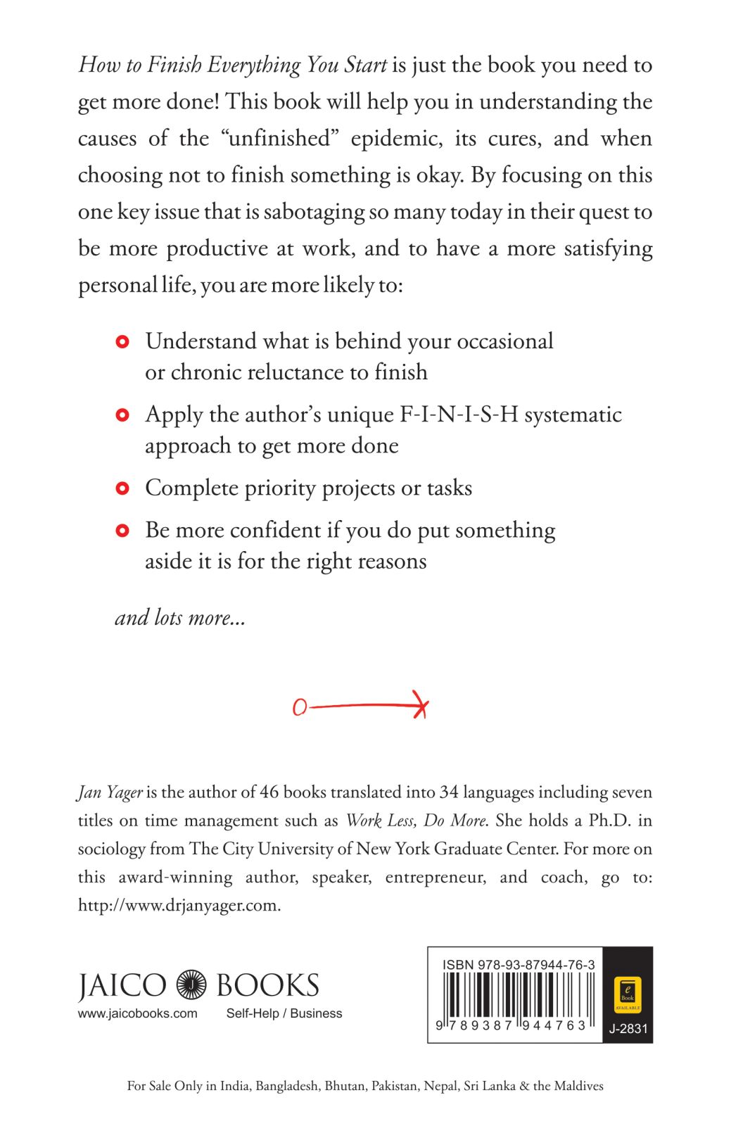How to Finish Everything You Start is just the book you need to get more done! This book will help you in understanding the causes of the “unfinished” epidemic, its cures, and when choosing not to finish something is okay. By focusing on this one key issue that is sabotaging so many today in their quest to be more productive at work, and to have a more satisfying personal life, you are more likely to: